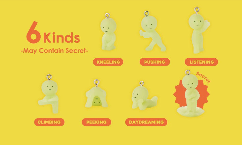 • Includes: ONE (1) Smiski Strap Charm Accessory - Sealed Blind Box - Surprise Random Figure - Original Mini Figure / Limited Edition. Sold blind-boxed in plastic, glow-in-the-dark gachapon capsule